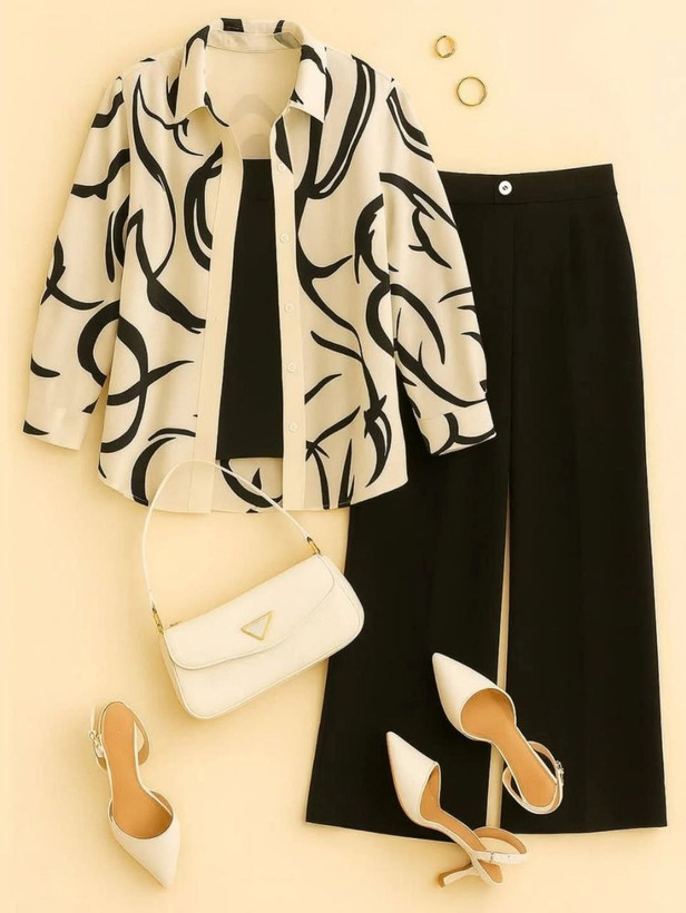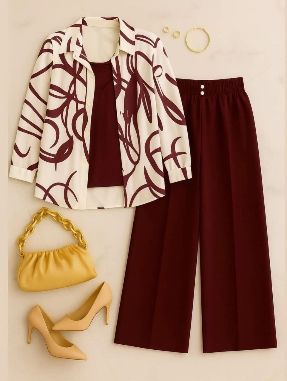 دقت کنید کار ما طلق ژورنال هست حالت ۳تیکه داره اما شومیززیره و رویه همرنگ شلوارها متصل هستن