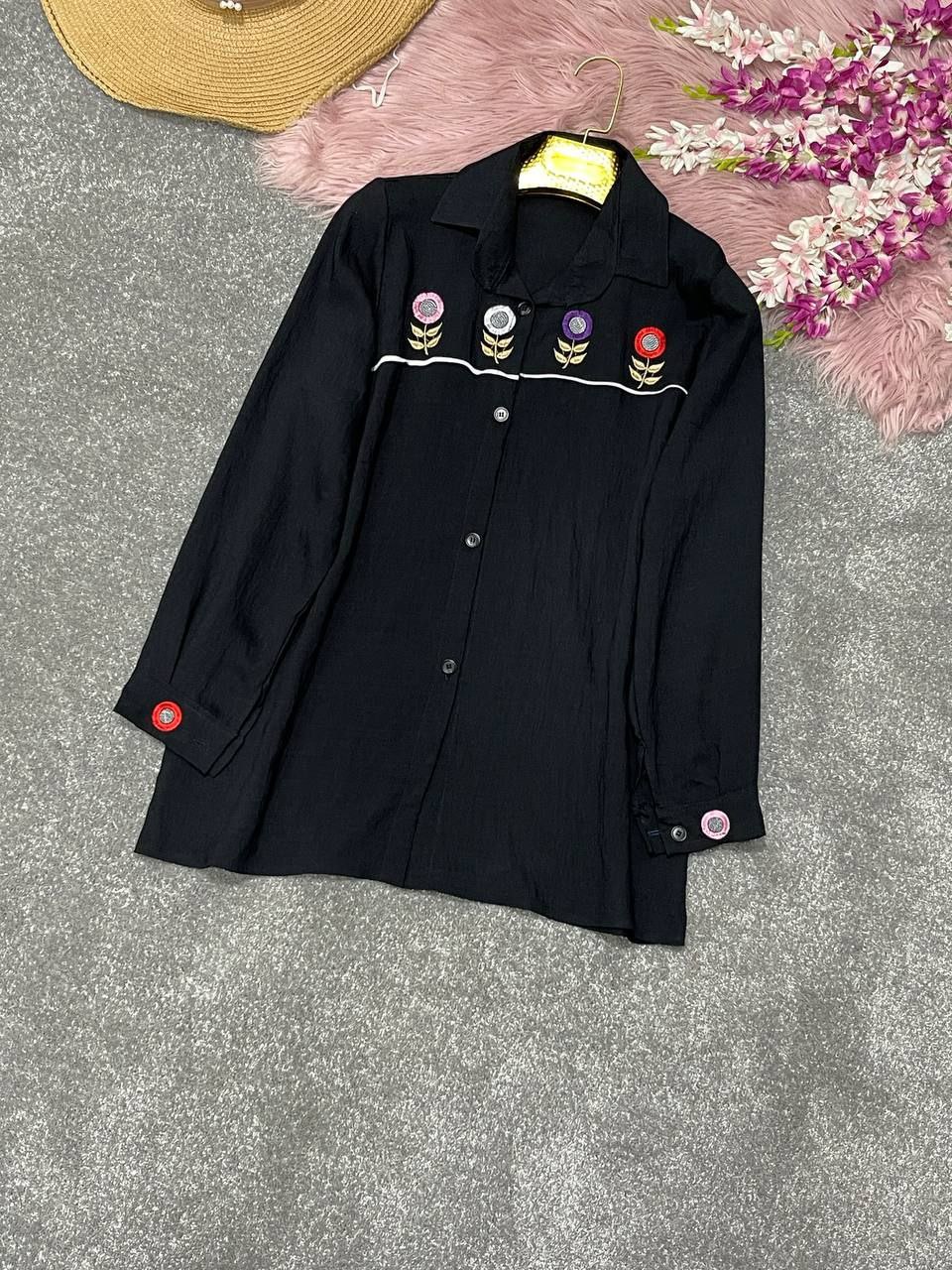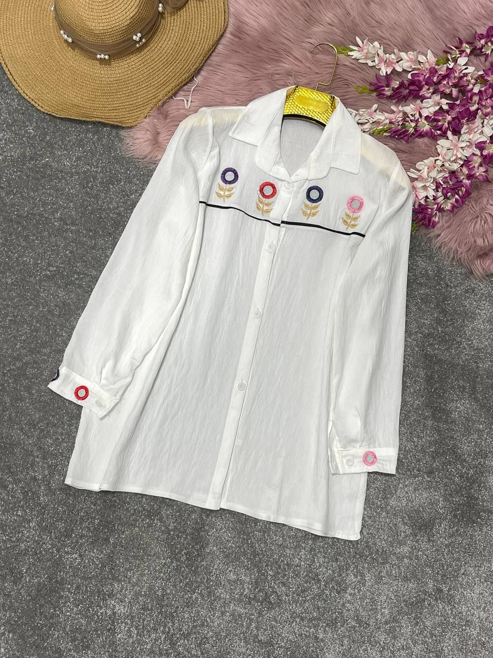 🛍نام : تونیک یقه عروسکی گلدوزی شده 🪡جنس : کرسپو👌🍃 🌈رنگ بندی : اناری, سبز, سفید, سورمهای, طوسی, کاراملی, مشکی, نسکافهای✔️ ⚜️سایز ها : فری۳۸تا۴۶✔️ ✅️قدکارحدودا ۷۵ قداستین ۵۸ دوربازو۳۸ دورسینه ۱۱۰