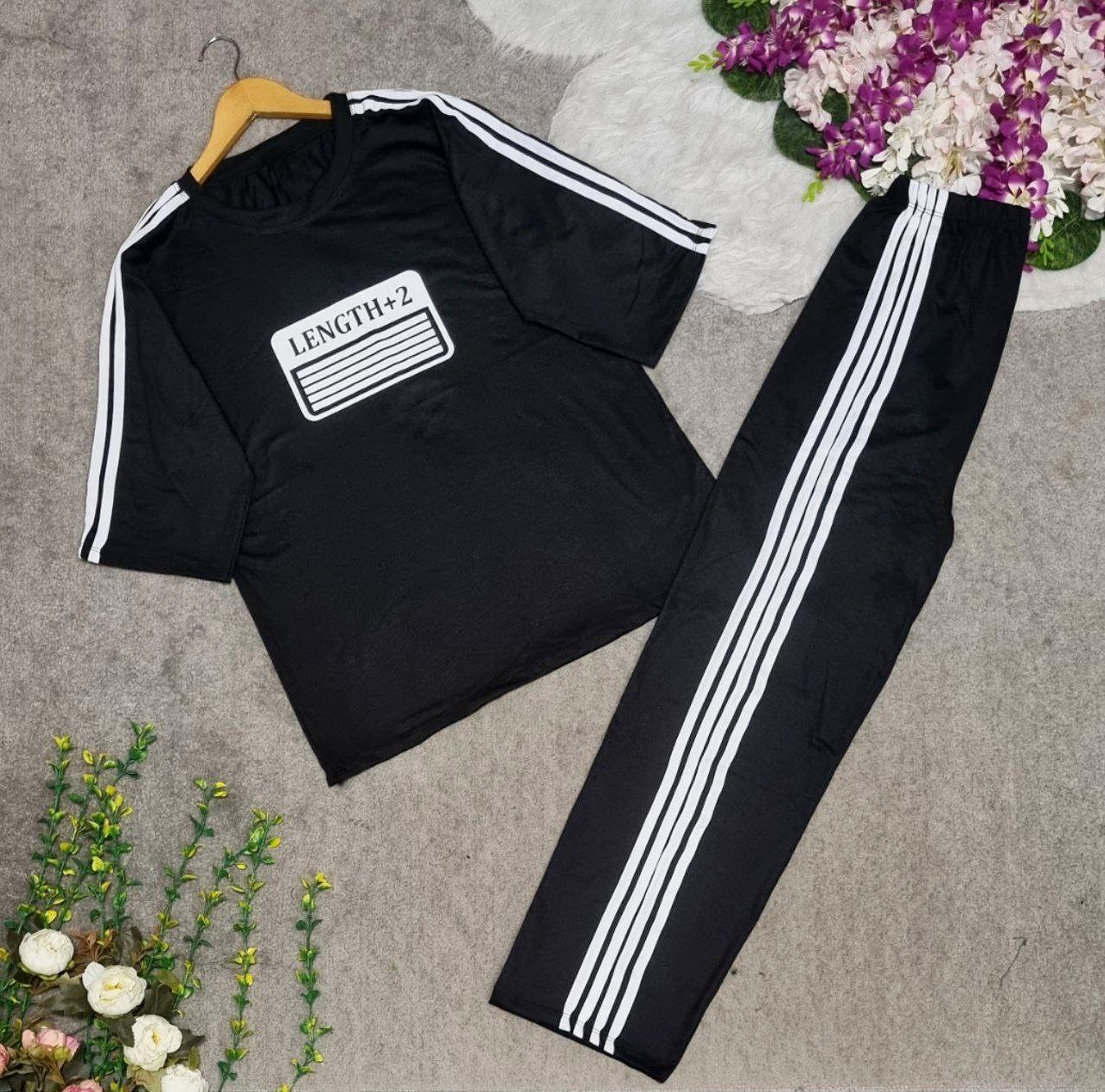 💎 نام: ست تیتک 📋 توضیحات: قد 70 دورسینه 110 استین از کنار یقه 46 شلوار حدود 103 کشی و راحت و شیک 💎 جنس: اسپان 💎 رنگ بندی: مشکی ⚜️ سایز ها: فری38تا48