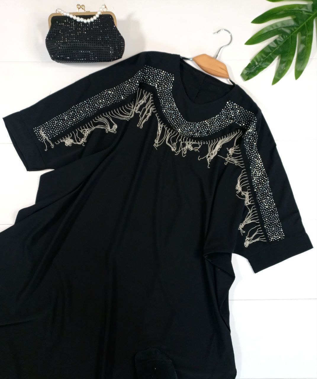 💞شناسه : #83350 💞عبایی سالیوان 💞جنس : الیزه 💞رنگ بندی : مشکی 💞سایز ها : فری38_52 🌹قد کار حدود ۱۲۵ سانت 🌹دور سینه آزاد 🌹قد آستین از یقه حدود ۵۵ سانت ✅️بند تنظیم سایز دارد