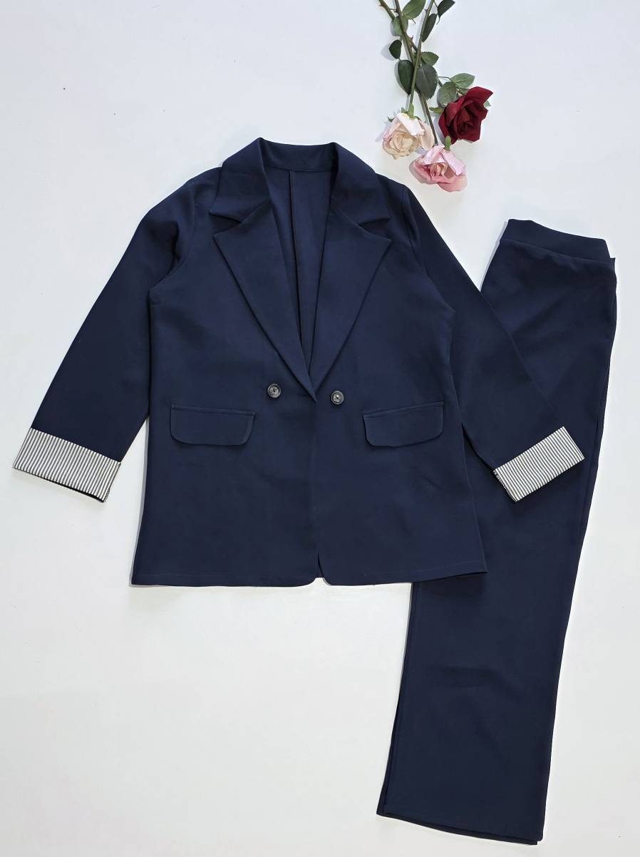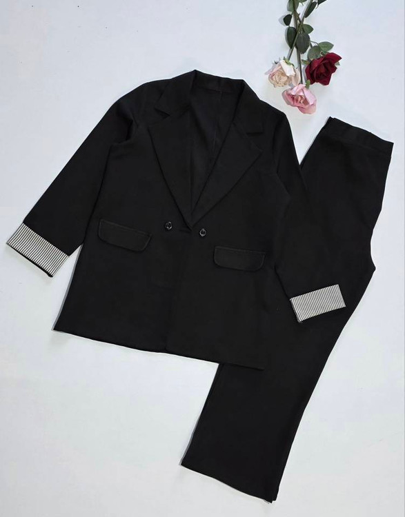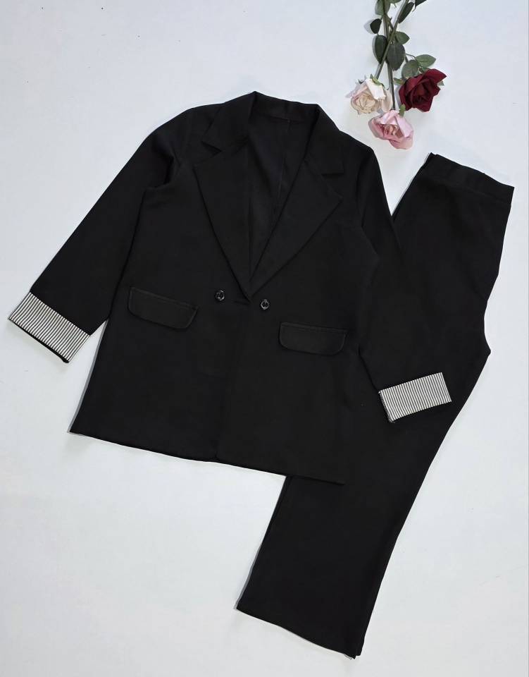 📋 توضیحات: 🪴کت شلوار سرمه ای ومشکی استین راه راه
