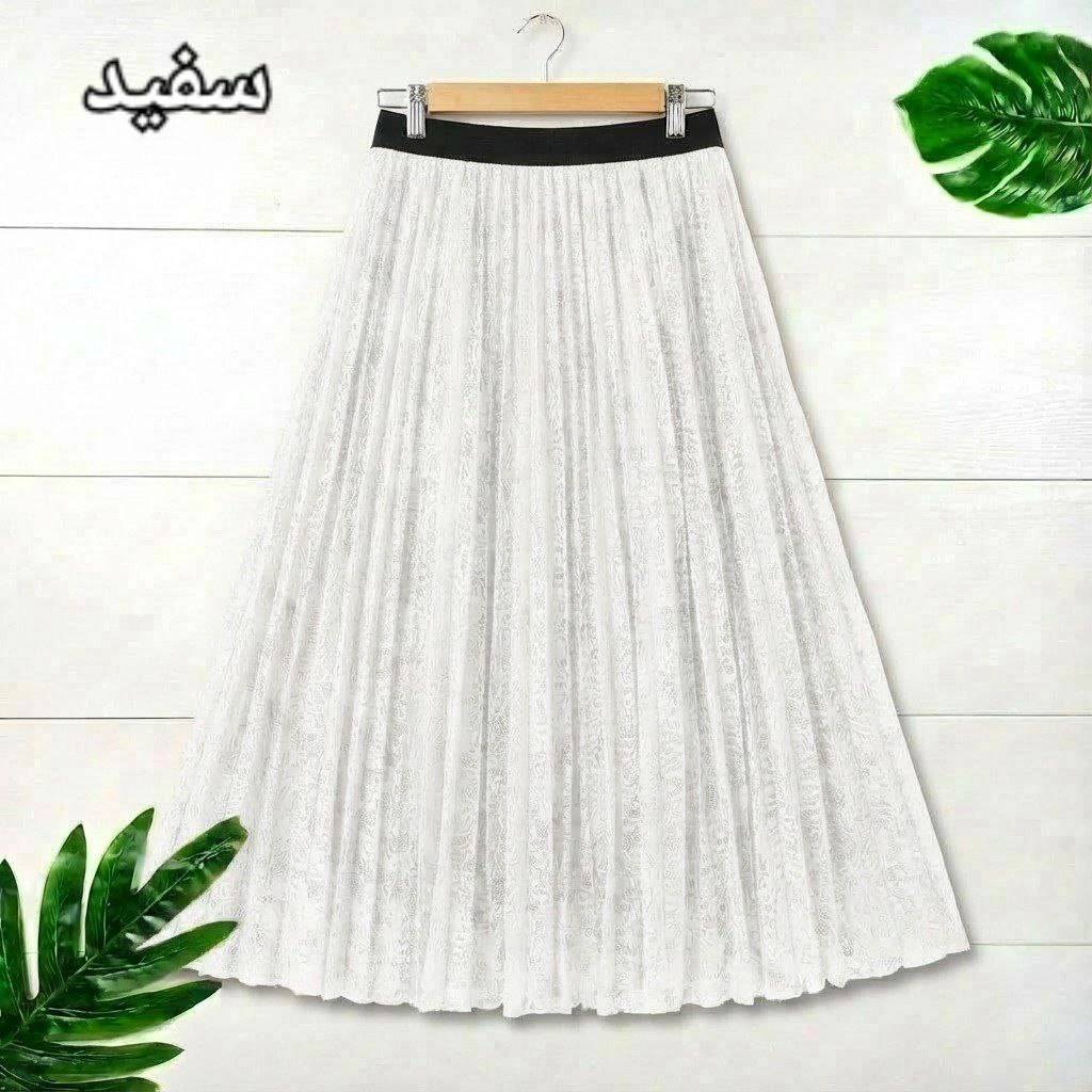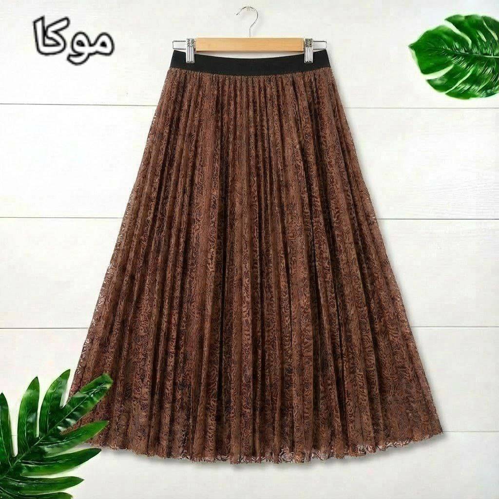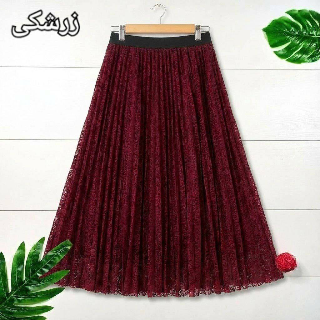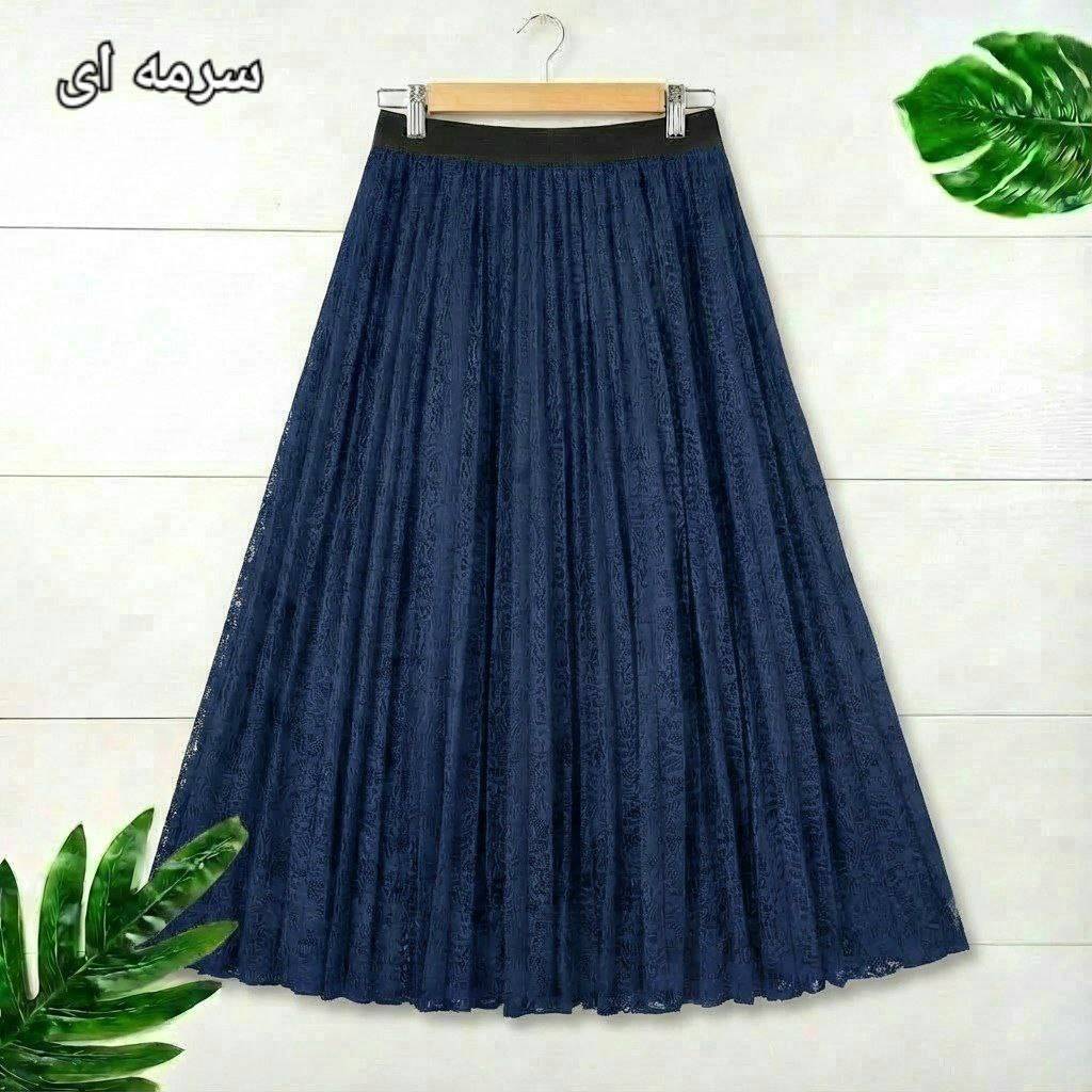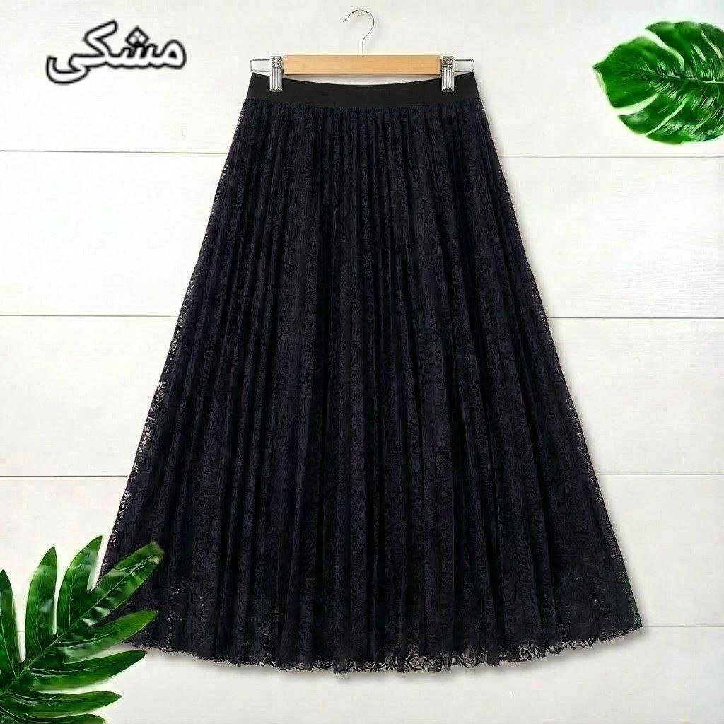 شناسه : #1548 نام : دامن پلیسه صنوبر جنس : گیپور درجه یک آستردار رنگ بندی : مشکی, موکا, سرمه ای سایز ها : فری38_46 🎀💞قد کار حدود ۹۵ سانت