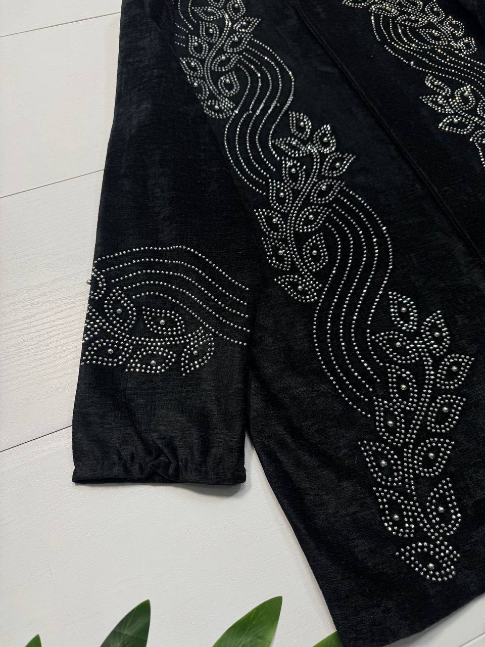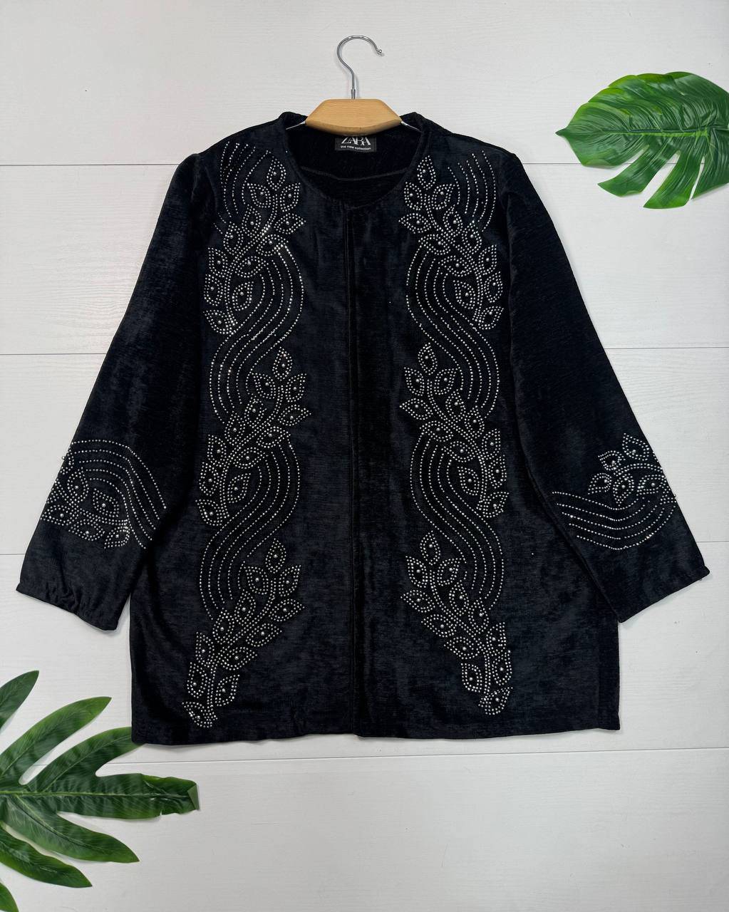 شناسه : #1175 نام : کت مجلسی آنیل جنس : مازراتی باکیفیت رنگ بندی : مشکی سایز ها : فری38_46 قد کار حدود ۷۵ سانت ❤️🔥دور سینه حدود ۱۱۰ سانت ❤️🔥قد آستین حدود ۵۸ سانت