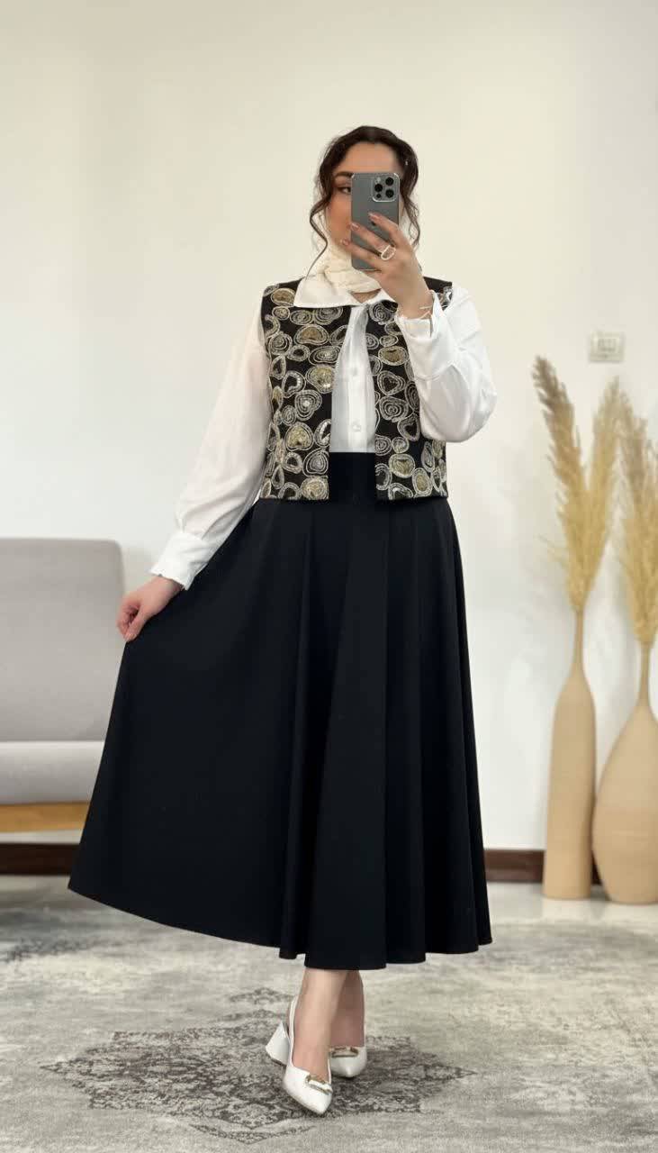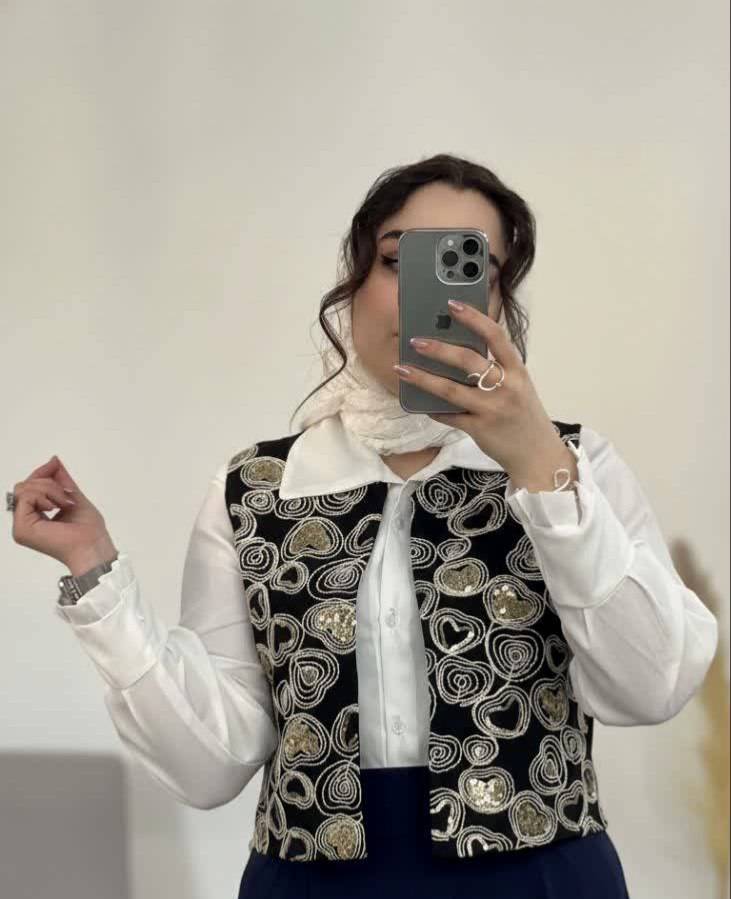 جلو جلیقه لایی کار شده برای ایست بهتر و پشت کار ساده از جنس دامن ✅
