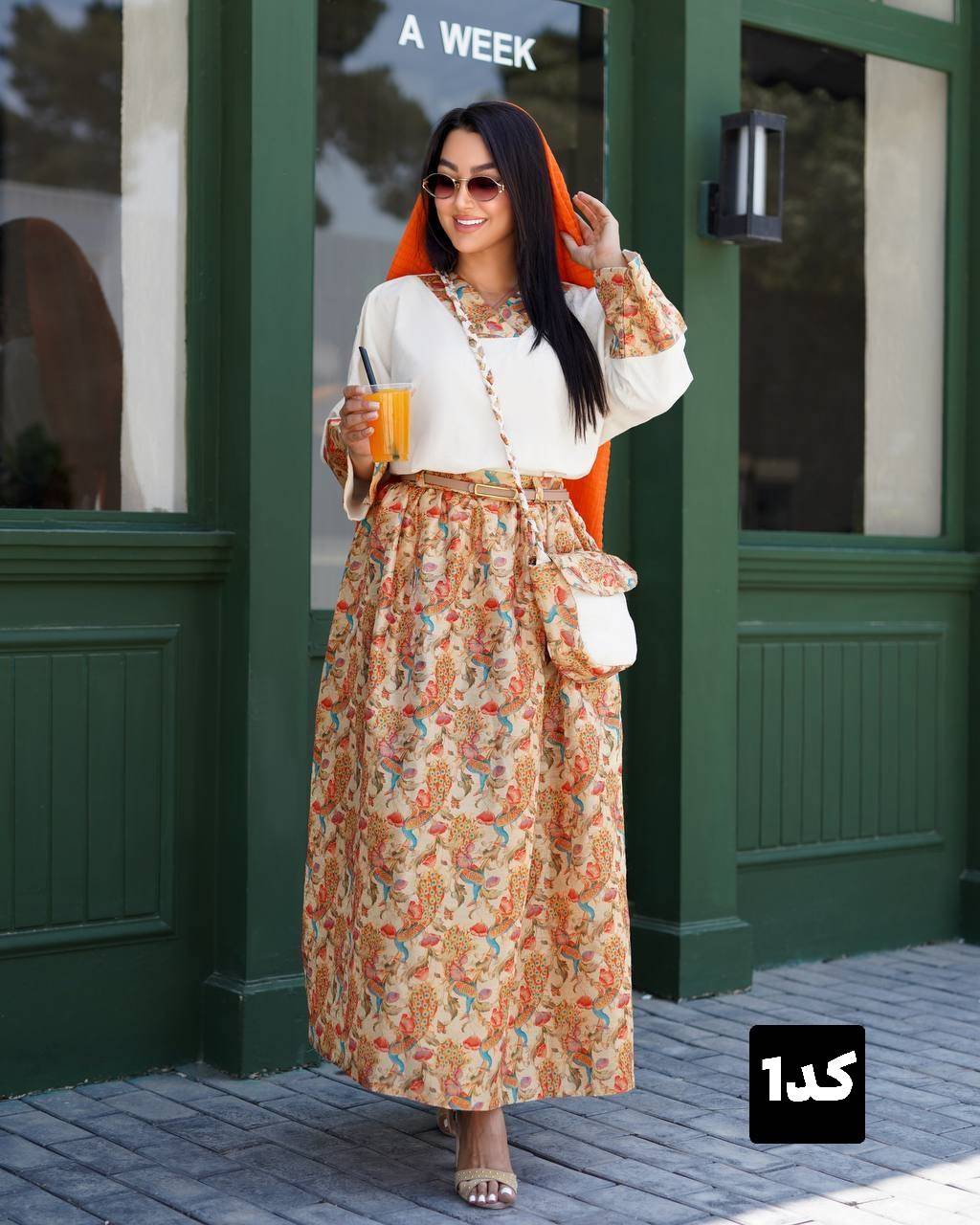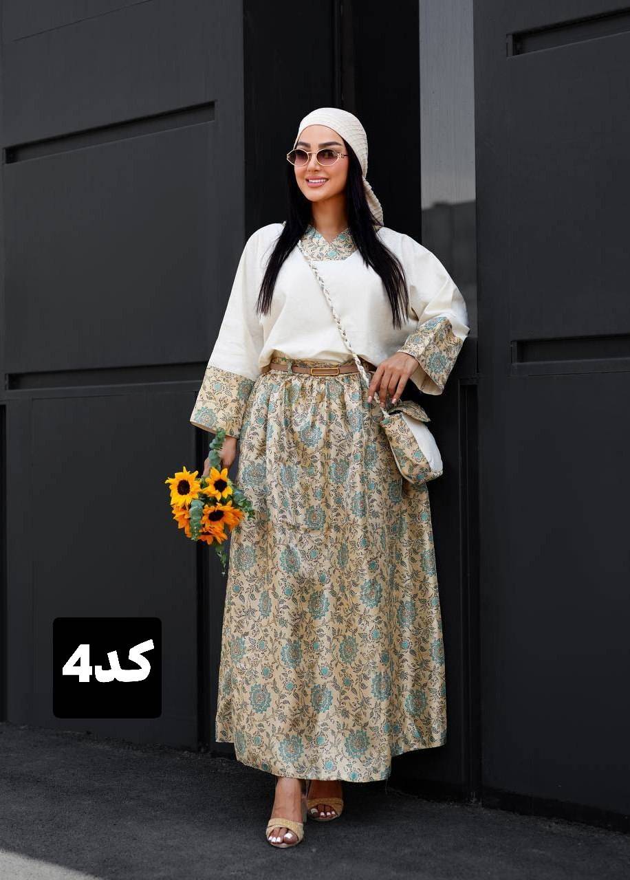 🆔 شناسه : #431 👚نام : ست سه تیکه نگارین 👗🌹قد شومیز 63 🌹دورسینه 124 🌹قد استین از یقه 62 🌹قد دامن 90 ❌3 تیکه شامل شومیز و دامن و کیف ❌ 🧵جنس : جنس شومیز لینن ترک طرح دار دامن لینن هندی 🖌 رنگ بندی : کد1 - کد2 - کد3 - کد4 - ⚜️ سایز ها : 38/46 - 💰