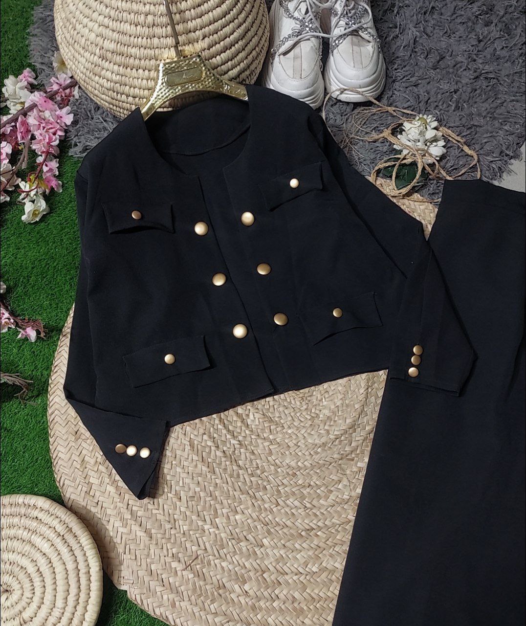 تضمین دوخت و کیفیت نام : کت ودامن نیلسوان جنس : مازراتی اعلا رنگ بندی : مشکی سایز ها : فری۳۸تا۴۶ کمربند ندارد❤️ دامن دوجیب کاربردی دارد🍁 قددامن۹۰قدکت۵۵ دورسینه۱۰۴حدودا دامن کمرکش وجیب دارد✔ ارسال فردای ثبت